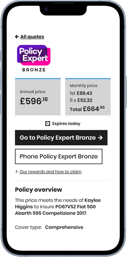Kaylee Higgins cut her Abarth 595 Competizione insurance price from £1,784.97 to just £596.18 using our tips and tricks, saving an amazing £1,188.79. A few smart tweaks were all it took!